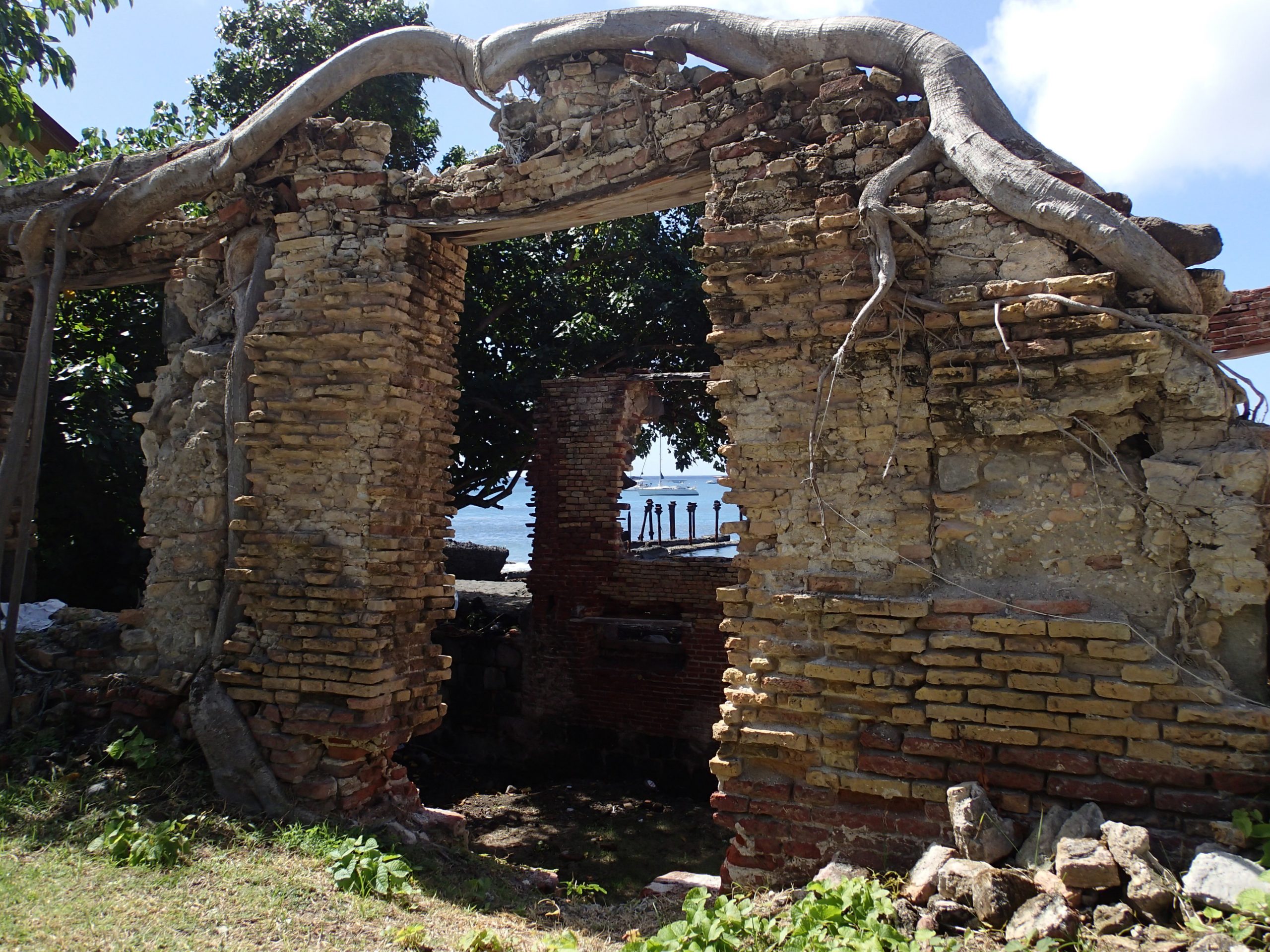 Nachdem wir die meisten technischen Probleme an Bord der `Rossy` in St. Martin gelöst hatten war das erste Ziel St. Eustachia (kurz `Statia`) eine ehemalige holländische Kolonie, schon immer wichtig als Drehscheibe zwischen den Amerikas und Europa. Sklaven, Gewürze und Bodenschätze wurden hier umgeladen und verschifft. Auch heute noch dient Statia als Umschlaghafen für Öl/Diesel. Die riesigen Verladedocks sehen zwar nicht sehr schön aus, tun aber dem Rest der Insel keinen Abbruch. Der 600m hohe Vulkan Mazinga in der Mitte der Insel dominiert das Bild und man muss einfach rauf um einen grandiosen Rundblick zu haben und 200m tief in den (erloschenen) Vulkanschlund zu haben…Holländer und Spanier haben schon immer auf dieser fruchtbaren Insel gesiedelt und die Überbleibsel finden sich im Regenwald an den Hängen des Vulkans als wild wachsende Bananen, Papaya, Mango,usw. wieder. Rumflitzende Chicken, Schweine und Ziegen geben einem das Gefühl in einer riesigen Freilandfarm rumzulaufen…Die Häuser von Oraniestaad auf Statia sind dazu dann die perfekte Ergänzung – im 17. Jahrhundert hatten die Holländer keine besonders neuen Ideen was die Architektur anbelangt und so stehen hier mitten in der Karibik Häuschen wie an der Nordsee… Man fühlt sich nicht so als sollte man einen Cocktail oder eiskaltes Bier bestellen, eher einen Grog oder Matjesbrötchen!