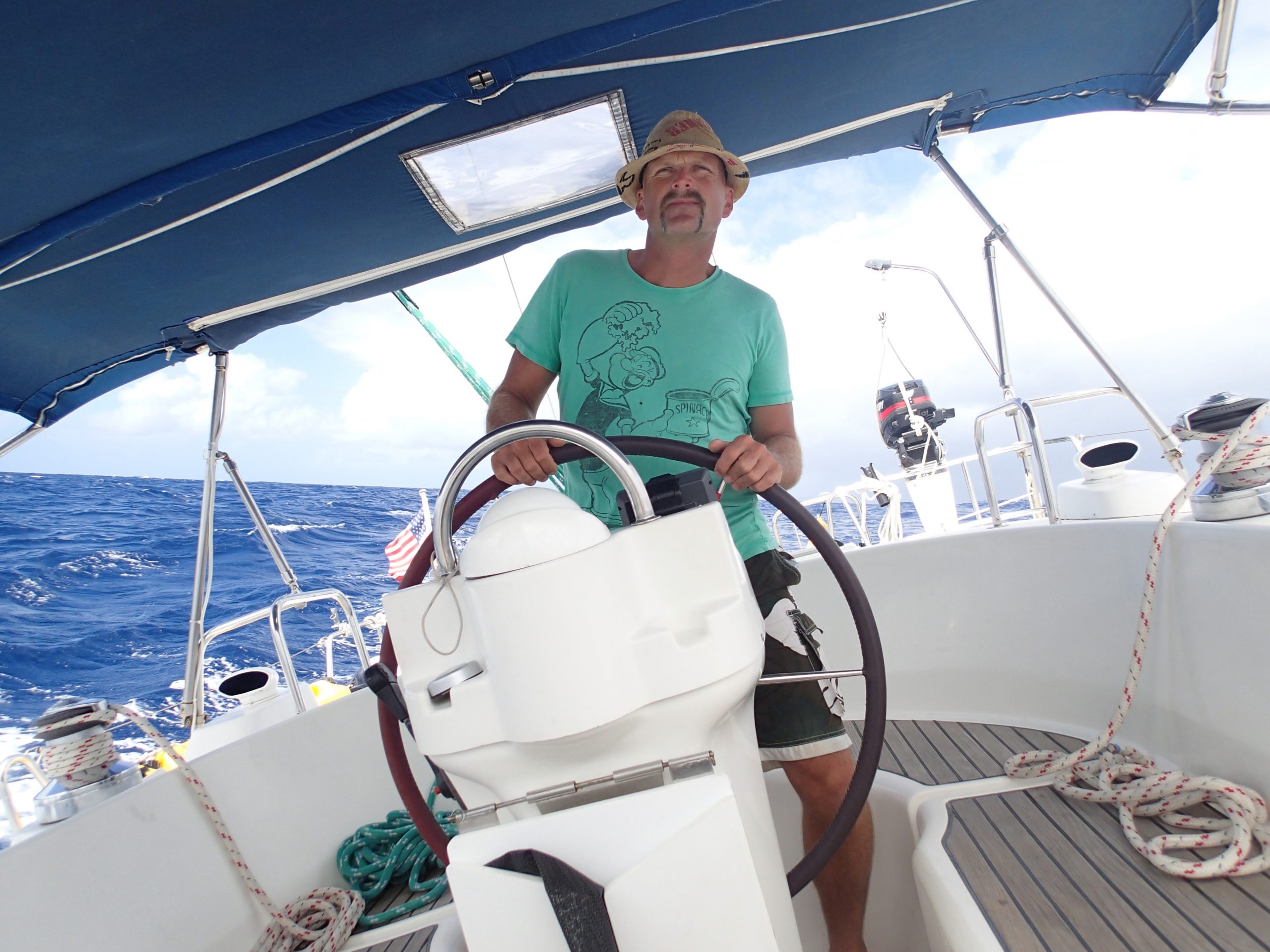 Wieder bischen Hangover, aber wir haben noch den ganzen Vormittag Zeit um uns auf die 90 Seemeilen zurück nach St. Maarten vorzubereiten. Rosi muss dort von Bord um ihren Flug zurück nach Deutschland zu kriegen und so muss dieser Schlag genau auf die Minute geplant sein. Um 3h nachmittags lichten wir Anker und lassen uns gemütlich, wie geplant mit achterlichem Wind und Wellen Richtung NW schieben. Wir freuen uns schon auf ein Nachtsegeln bei Vollmond mit Cocktail in der Hand als der Autopilot anfängt zu spinnen und bereiten uns also auf Handsteuerung in 3h-Schichten vor. Eine Notreparatur des Steuergeräts hat den gewünschten Erfolg und so cruisen wir zwar nicht mit Hand an der Pinne aber dennoch wachen Auges in unseren Wacheschichten dahin. Die Nacht ist ein Traum – sowas hat man nicht sehr oft… Nach meiner Schicht geh ich gar nicht in meine Koje, sodern leg mich an Deck und schau in den Himmel und träum den Seglertraum, sorry – kitschig!